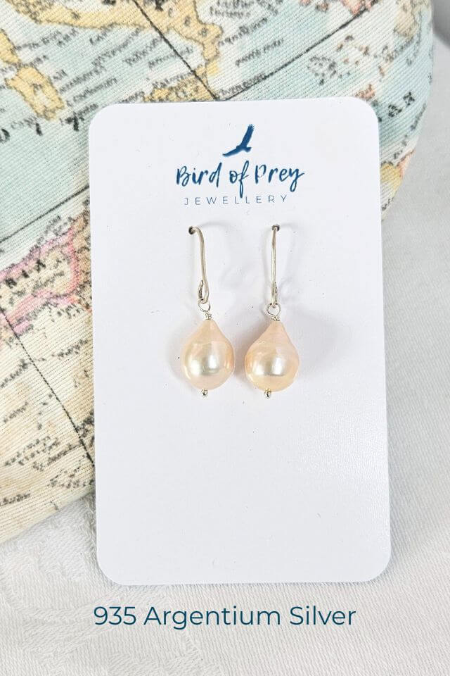 The earrings are 3.5 cm in total length. There may be slight colour variation in the pearls, being a product of nature.