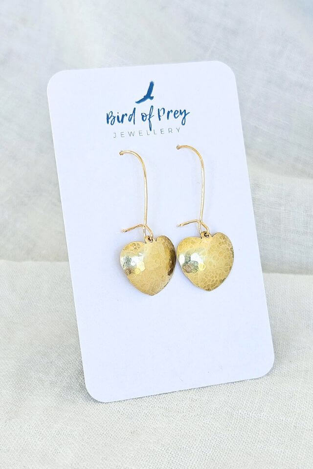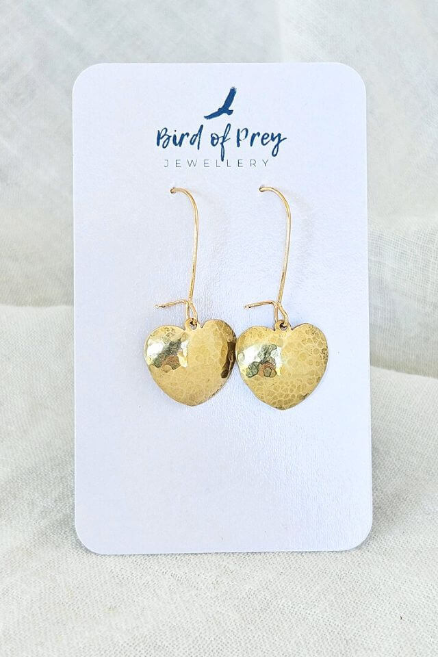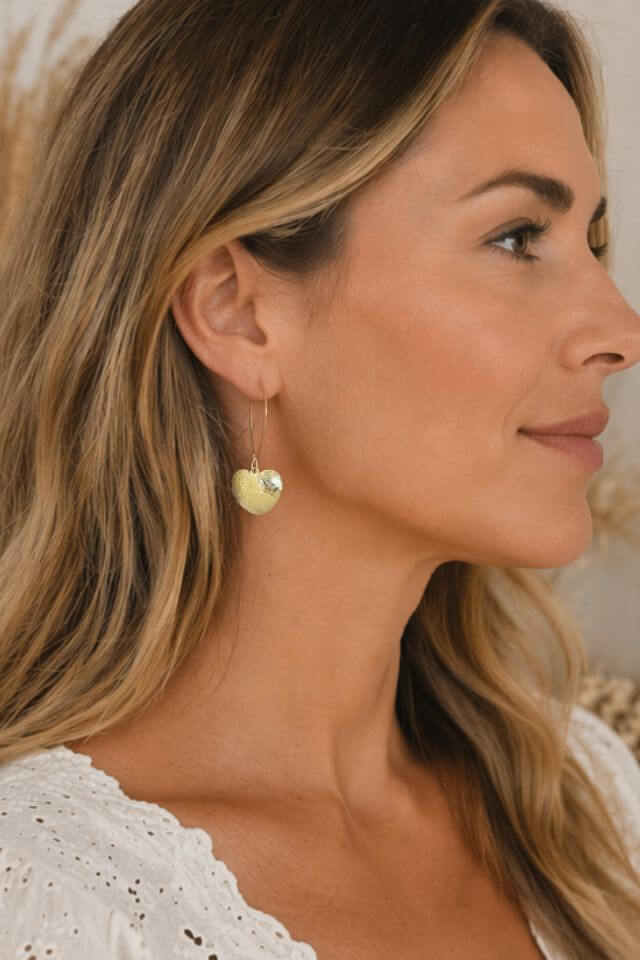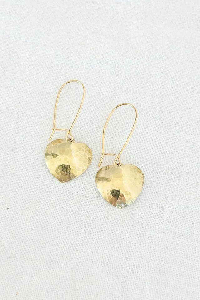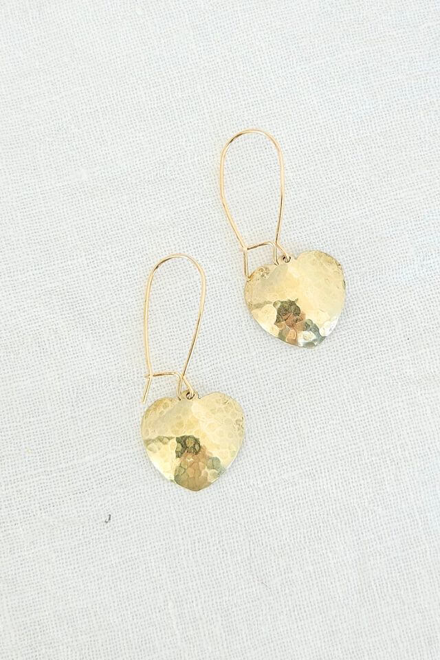Each heart is individually shaped and hammer textured, giving them a handmade, soulful vibe.