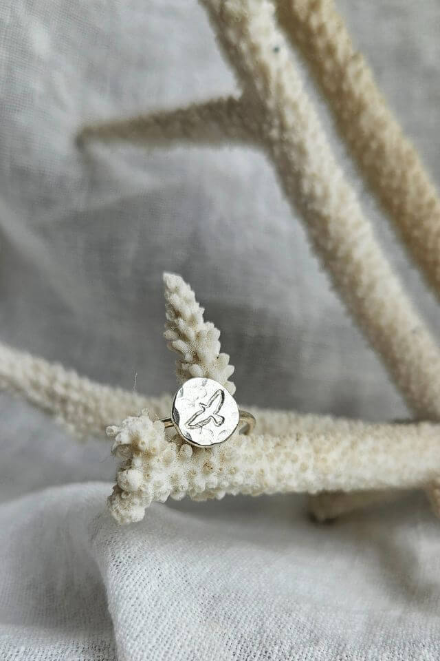 Timeless, lightly wild, and thoughtfully forged from silver off-cuts, this ring reflects a love of nature and independence—beautifully at home on sun-kissed hands across Aotearoa New Zealand.