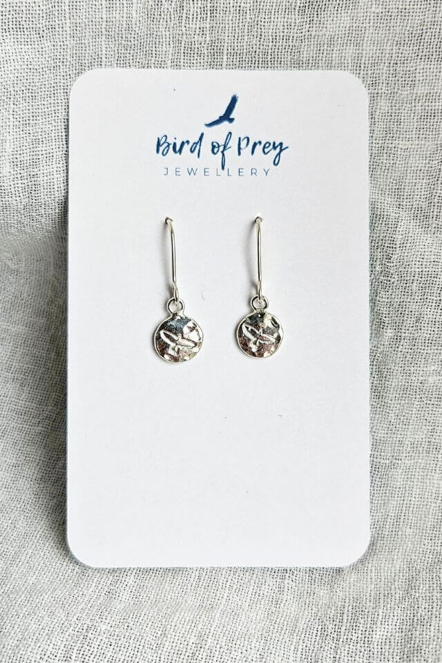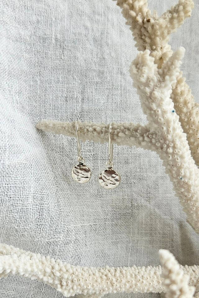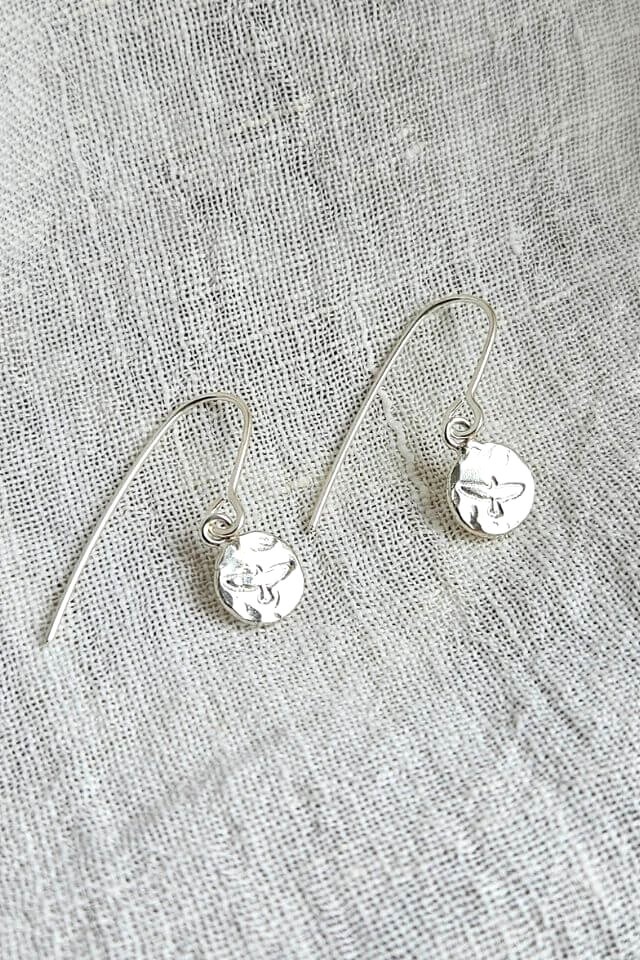 These earrings are designed and hand-made in Gisborne, New Zealand, from recycled, imported silver.